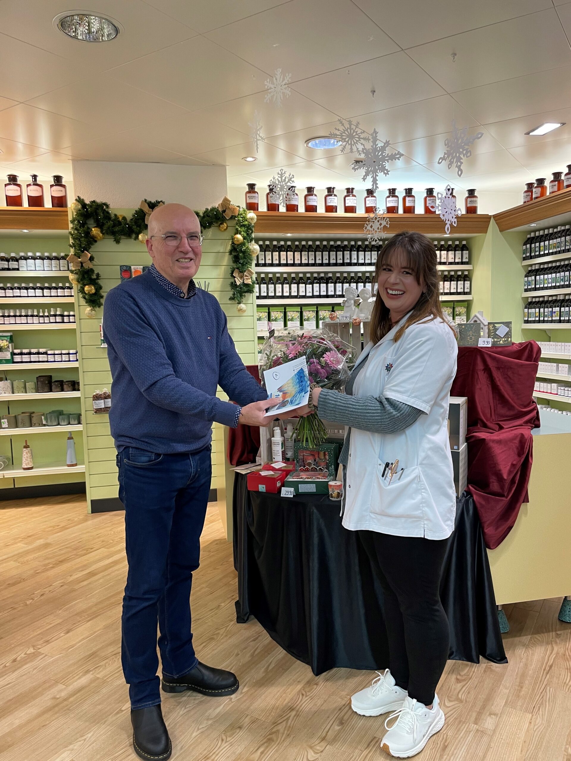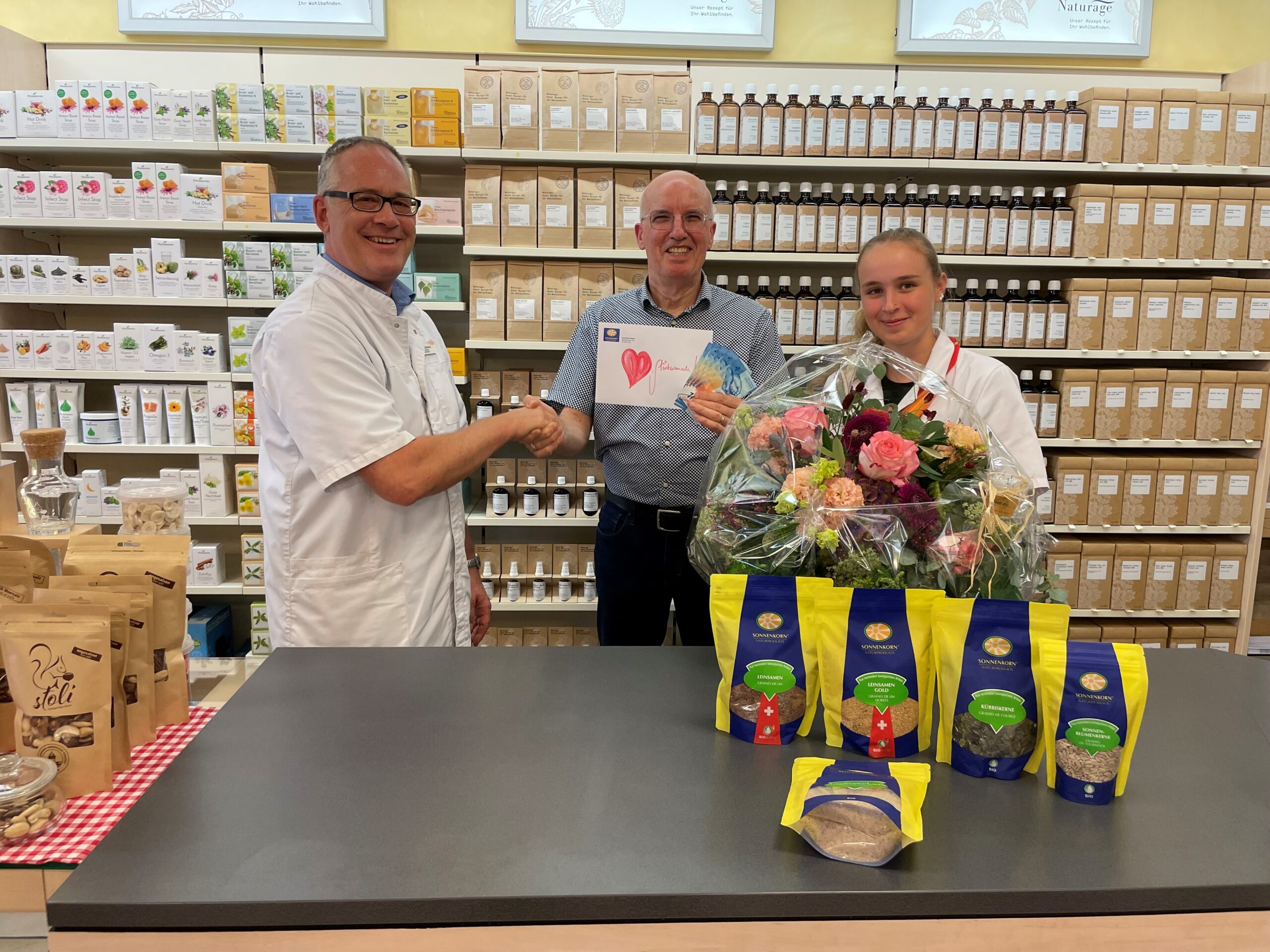 Den Herbstwettbewerb entschied das Team der Drogerie Sommerhalder in 5736 Burg per Losentscheid für sich. Wir gratulieren dem Sieger:innenteam, das von Urs Hüttinger (Sonnenkorn) bereits den Siegerpreis von 500 Franken für die Teamkasse erhalten hat recht herzlich! Frau Carina Sommerhalder empfiehlt die Sonnenkorn Produkte Ihrer Kundschaft sehr gerne, Sie hat beim Verkauf ein gutes Gefühl, da Sie in Ihrer beruflichen Karriere noch nie eine Reklamation zu einem verkauften Produkt entgegen nehmen musste.